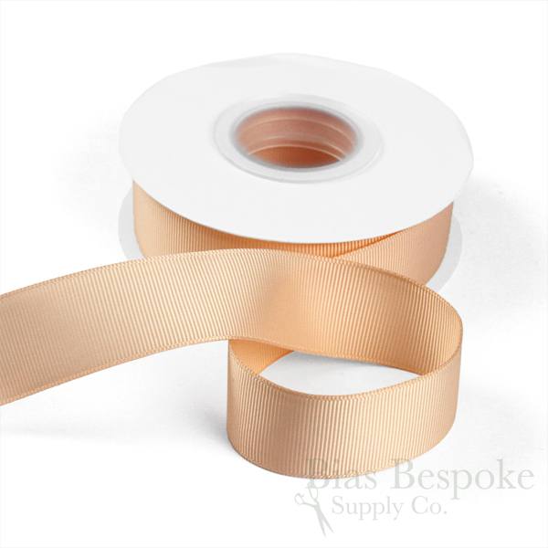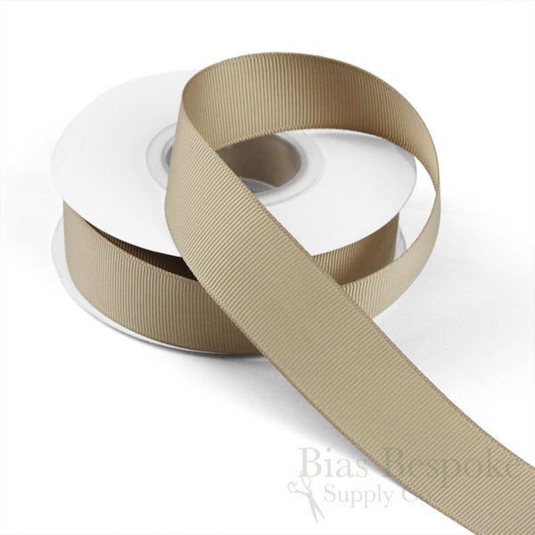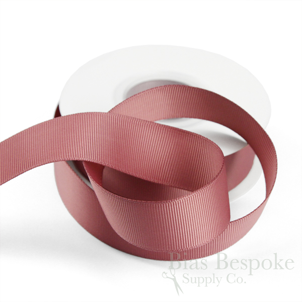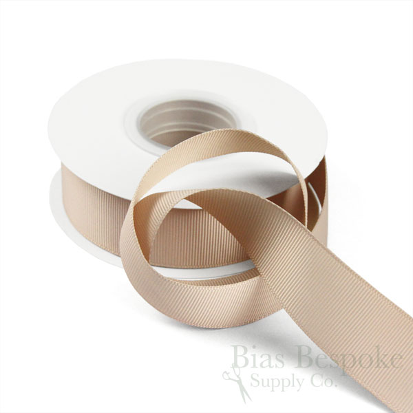 MILLIE grosgrain ribbon is a good, solid basic. Strong, but soft to the touch. 1" (25mm) wide, in 60 colors. 100% Polyester. 20 yards per roll. Made in China.